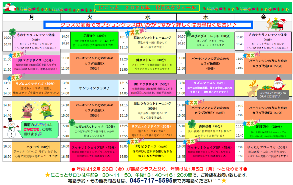 ※年内は12月26日(金)が最終クラスとなり、年明けは1月5日(月)~となります。