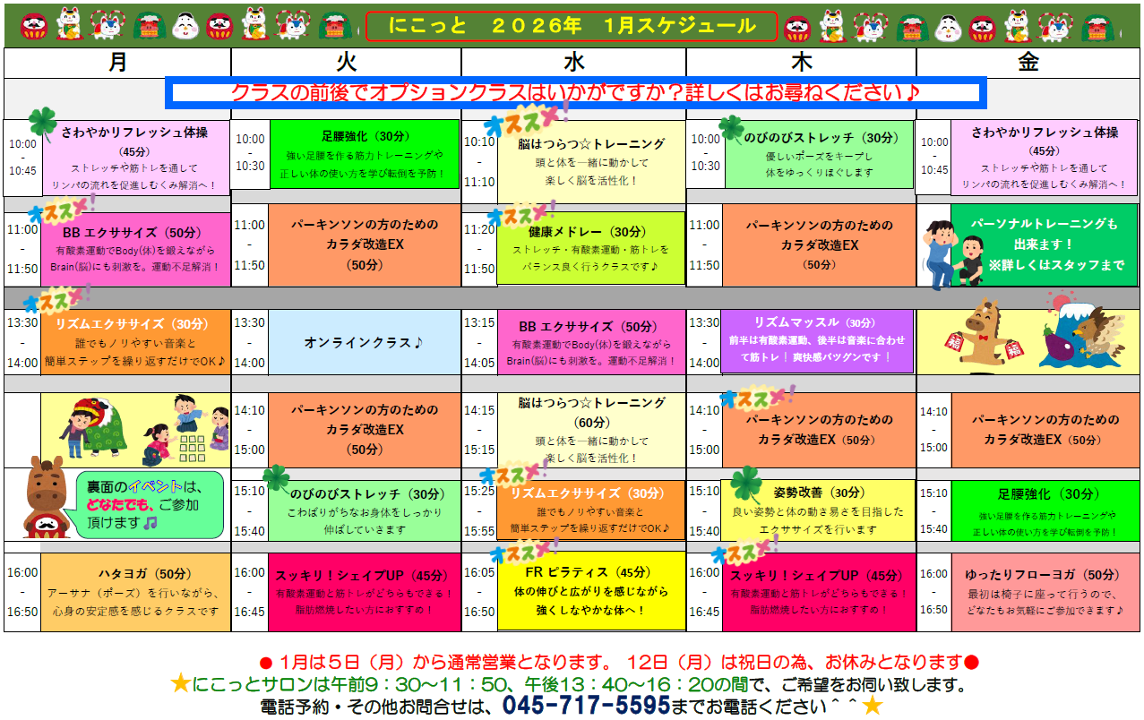 ※1月は5日からとなります。1月12日(月)は祝日の為お休みとなります。