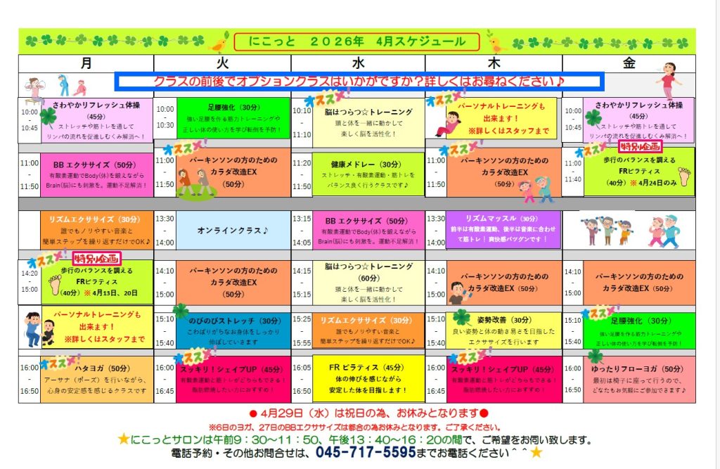 2026年4月の予定表は以下からご確認いただけます。